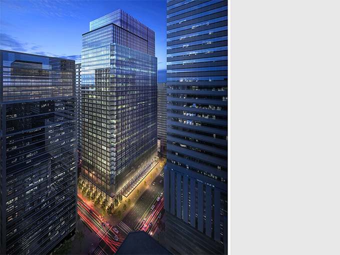 SOM’s design approach—balancing tradition and innovation—is reflected in the design of the two towers, which differ in their scale, massing, and materiality. Tower A, which faces the Imperial Palace, is the lower of the two buildings, and its design responds to the history of the site. At 160 meters tall, the tower’s scale harmonizes with the adjacent commercial buildings fronting the Imperial Palace East Gardens. The tower’s design, in its detailing, is inspired by traditional Japanese craftsmanship and woodworking techniques, brought to a contemporary interpretation by the use of granite and glass cladding. Tower B, which faces the Ohtemachi district, will rise to 200 meters. Clad in glass and steel, this tower establishes a strong presence on skyline as an emblem of contemporary Japan. Both towers are designed to allow for natural ventilation, and they include a range of sustainable design features that reduce their energy use.