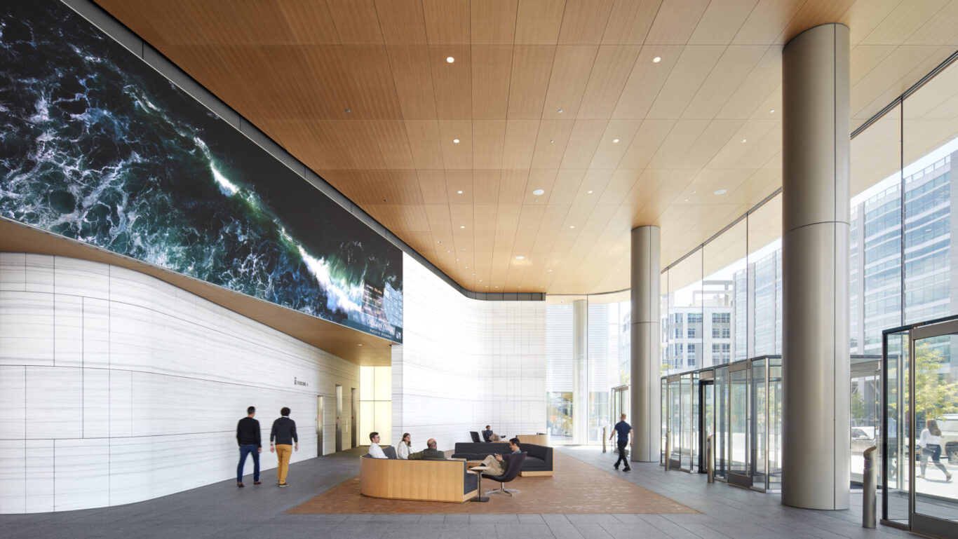 The 25-story tower expresses two distinct identities: the limestone base, which contains the meetinghouse, draws on the language of traditional religious architecture, while the glass office tower exemplifies a contemporary commercial center. While each has a separate entrance and presence at street level, the two components are linked together, both structurally and functionally.