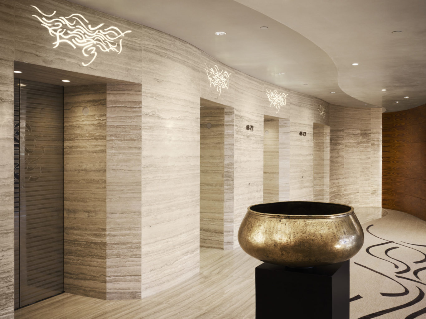 The design for the tower is inspired by the geometries of a regional desert flower and the patterning systems embodied in Islamic architecture. Built of reinforced concrete and clad in glass, the tower is composed of sculpted volumes arranged around a central buttressed core. As it rises from a flat base, setbacks occur in an upward spiraling pattern, which reduces the building’s mass as it reaches skyward. At the pinnacle, the central core emerges and is sculpted to form a spire.