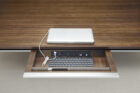 The table has multiple options for a panel base or continuous base in either a wood or chemcolor finish to match the drawers. Surface materials range from natural wood or stone to sleek back painted glass and other solid surfacing materials. Even the edge trim detail can be tailored in a polished chrome, satin aluminum, or any other custom finish. The Mesa table gives designers, specifiers, and end users ultimate control over the finished product for each unique workplace.