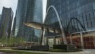 A freestanding canopy employing a complex cable-net support system foots each tower. Both skyscrapers also feature crowns of precisely spaced and angled glass panels. The design of this uppermost feature maximizes permeability in the prevailing wind direction, in order to minimize wind loading at the base of the towers. Meanwhile, the panels appear most dense in the dominant visual direction, making the towers seem as if they are dissolving into the horizon. The shapes create a strong statement on Nanchang’s developing skyline.