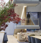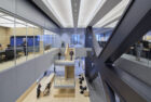 JPMorganChase’s global headquarters at 270 Park Avenue, designed by Foster + Partners, is a landmark addition to the New York City skyline. Just above the building’s spacious lobby, eight expansive trading floors designed by SOM are purpose-built for the pace, precision, and collaboration of finance in the digital era. Designed to accommodate approximately 4,000 traders across 500,000 square feet, the trading floors are configured in a way that is entirely new. Organized into a series of two-story suites, each line of business is anchored by a double-height atrium that unites the teams across levels. These atria house work cafés, interconnecting stairs, and central conferencing areas—creating vertical “neighborhoods” that provide a variety of spaces and encourage people to meet throughout the day. Smaller meeting rooms and planted café areas line the perimeter, giving access to daylight, views, and opportunities for restoration.