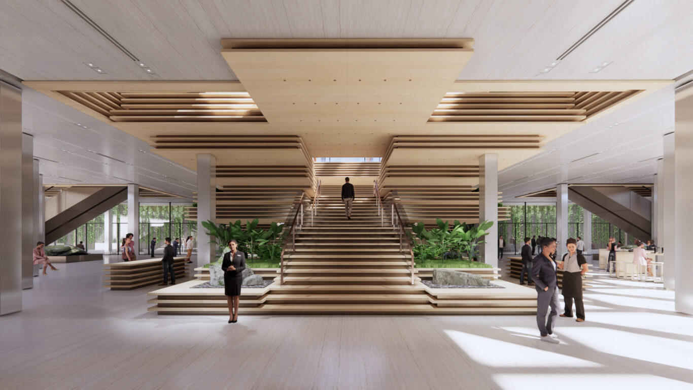 Highly innovative in its time, the architecture creates a strong sense of identity and is inspired by traditions of Korean architecture, which emphasizes the principles of layering as well as light and transparency through a connection to the outside. These principles are evident in the design of the exterior—including the quadruple-height glass atrium’s patterned facade—as well as the interior. Latticework inside the atrium, patterned floors, and lighting fixtures recall the traditional ornamentation of doors, called moon-chang-sal. Patterns applied to the walls, floors, and ceiling define a three-dimensional grid, creating a sense of stability and a clear framework for organizing the spaces within this unique atrium.