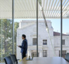 In designing a comprehensive renovation and expansion for the Grimes Engineering Center at UC Berkeley, SOM seized an opportunity to use SMA technology to enhance the building’s resilience against seismic events. The design—an innovative system of tension rods with SMA cables—constitutes the first-ever use of SMA technology in a building lateral force-resisting system in new construction. As a visible feature of the building’s structural system, the SMA cables become a signature element of the building’s identity.