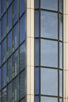 Conceived in two parts, the building is both a secure laboratory and a community resource in Harlem, a long-underserved neighborhood. The building meets the ground with a three-story masonry podium, offering quick clinical testing for visitors and a training laboratory for students to learn about careers in healthcare and science. Above, the laboratory floors rise within a glass cube stitched by a structural metal diagrid—giving the building its signature aesthetic and passive solar shading. The floor plates get progressively larger as the building rises, and with the structure pushed to the perimeter, the laboratories inside will remain customizable as science and technology evolve.
