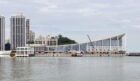 Located along the coast, Jiuzhou Bay will establish Zhuhai’s gateway to the Pearl River Delta, with a 1.8-million-square-foot port offering connections to the Greater Bay Area by road, rail, and sea. A ferry terminal in this transit center will open in the summer, when construction concludes on five modular canopies shading the entire port. Retail spaces beneath those canopies will open as well, along with residential buildings in the streets beyond.